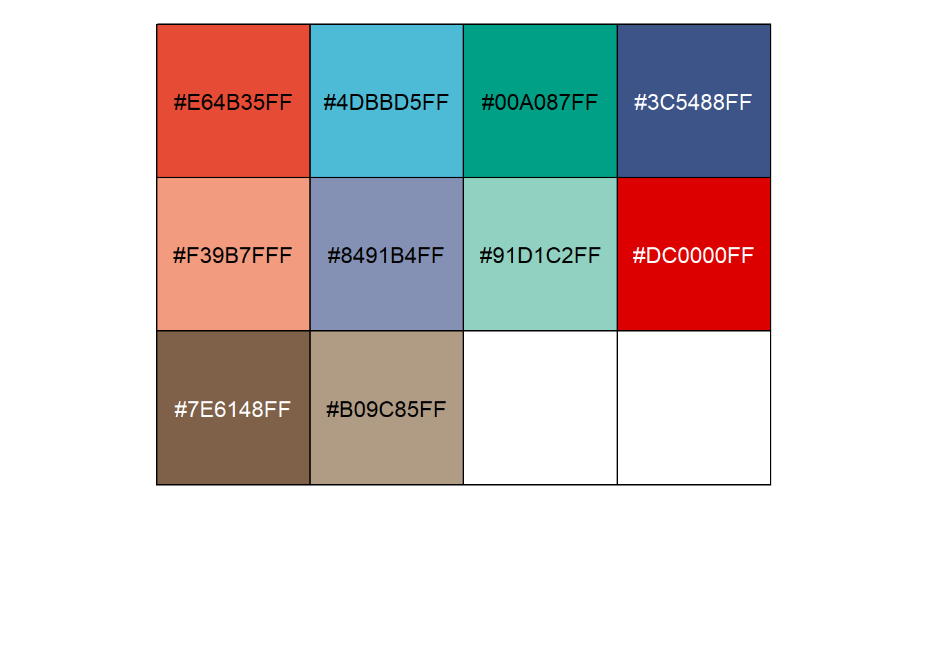 [7] "#91D1C2FF" "#DC0000FF" "#7E6148FF" "#B09C85FF"
